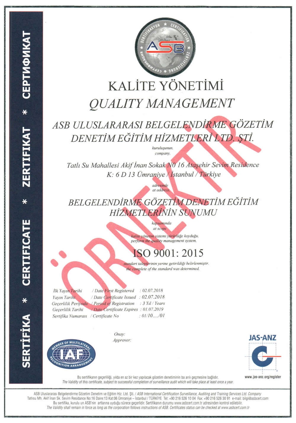Deneme Belge 1 tr